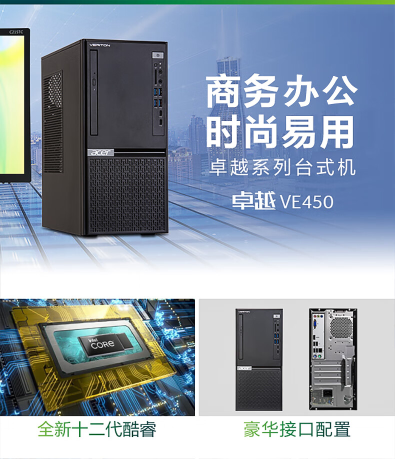 宏碁/ACER Veriton E450(I5-12400/16G/512GB SSD/集成显卡/23.8显示器)台式机 无